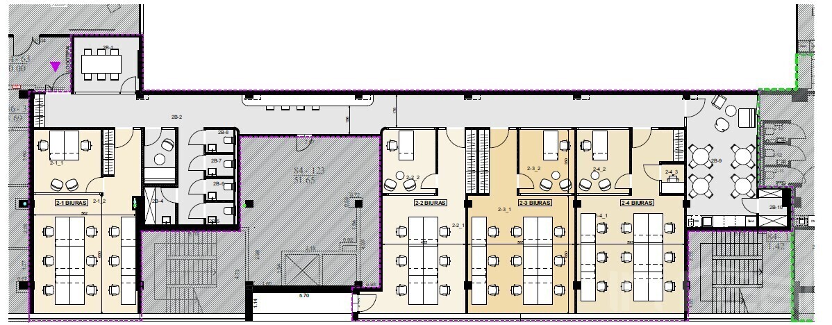 – Biuro plotas – 64,86 kv.m. (su priskirtomis proporcingai bendro naudojimo