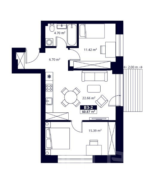 – Kambarių skaičius: 3 (2-ių miegamųjų), galimas įvairus buto suplanavimas pagal jūsų poreikius;