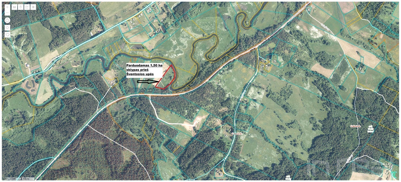 Rami, graži vieta, už kelio prasideda didelius Vyžuonų miškas, gera upės pakrantė, puikus privažiavimas. Sklypas tinkamas nedidelės asmeninės poilsinės sodybos įkūrimui. Taip pat sklypą galima išnaudoti nedideliam turizmo verslui – kadangi Šventosios upe šiltuoju metų laiku plaukia ypatingai daug baidarininkų, galima įkurti baidarėms skirtą poilsio sustojimo vietą – mini kempingą baidarininkams.