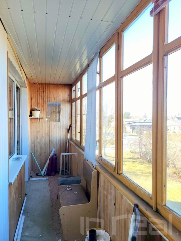 * Didelis ,6m balkonas įstiklintas medžiu.