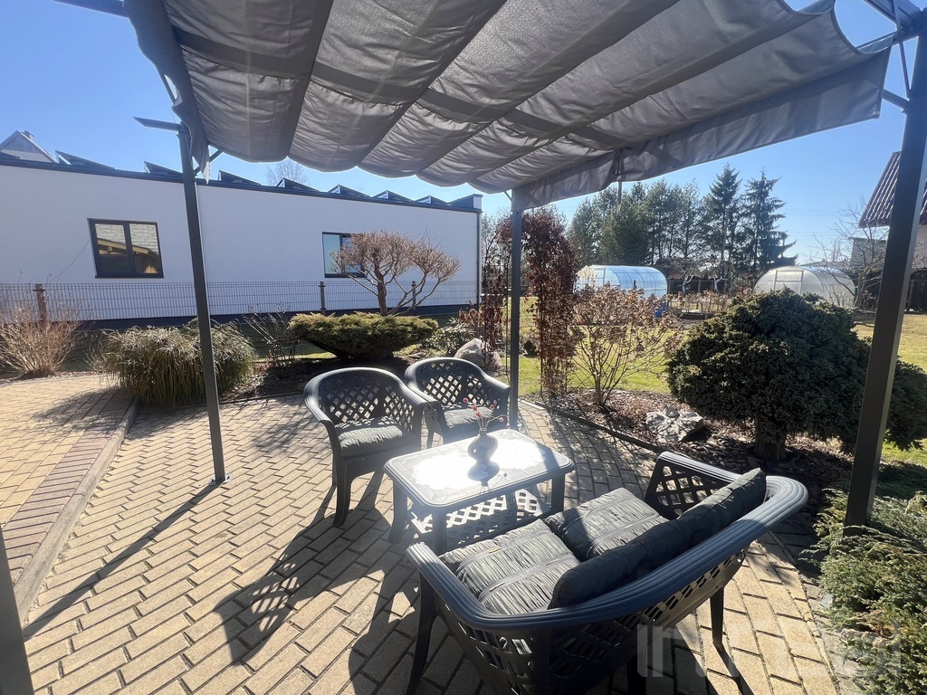 * Kieme – nauja metalinė pavėsinė–pergolė (3 x 3 m) su lauko baldais.