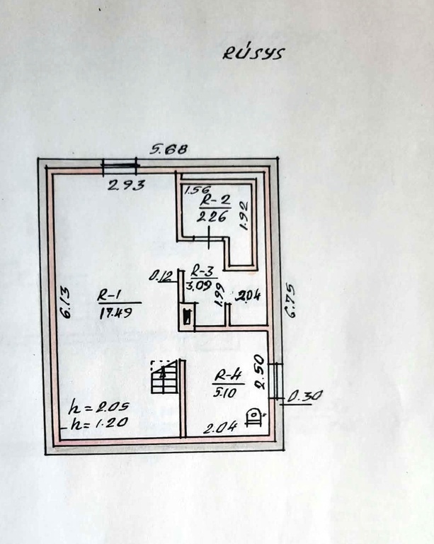 * Rūsys po visu namu . Rūsyje įrengta WC patalpa.