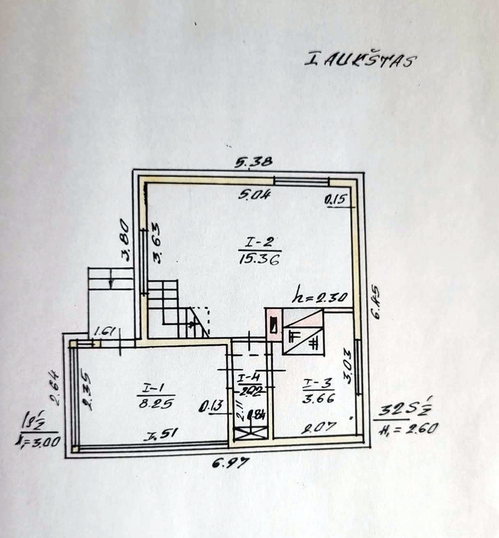 * Namo pirmame aukšte didelis kambarys su židiniu, virtuvė ir holas.