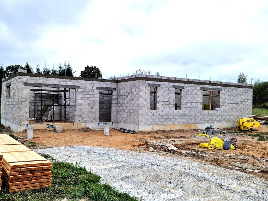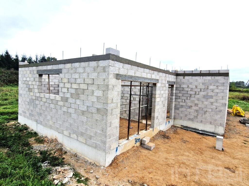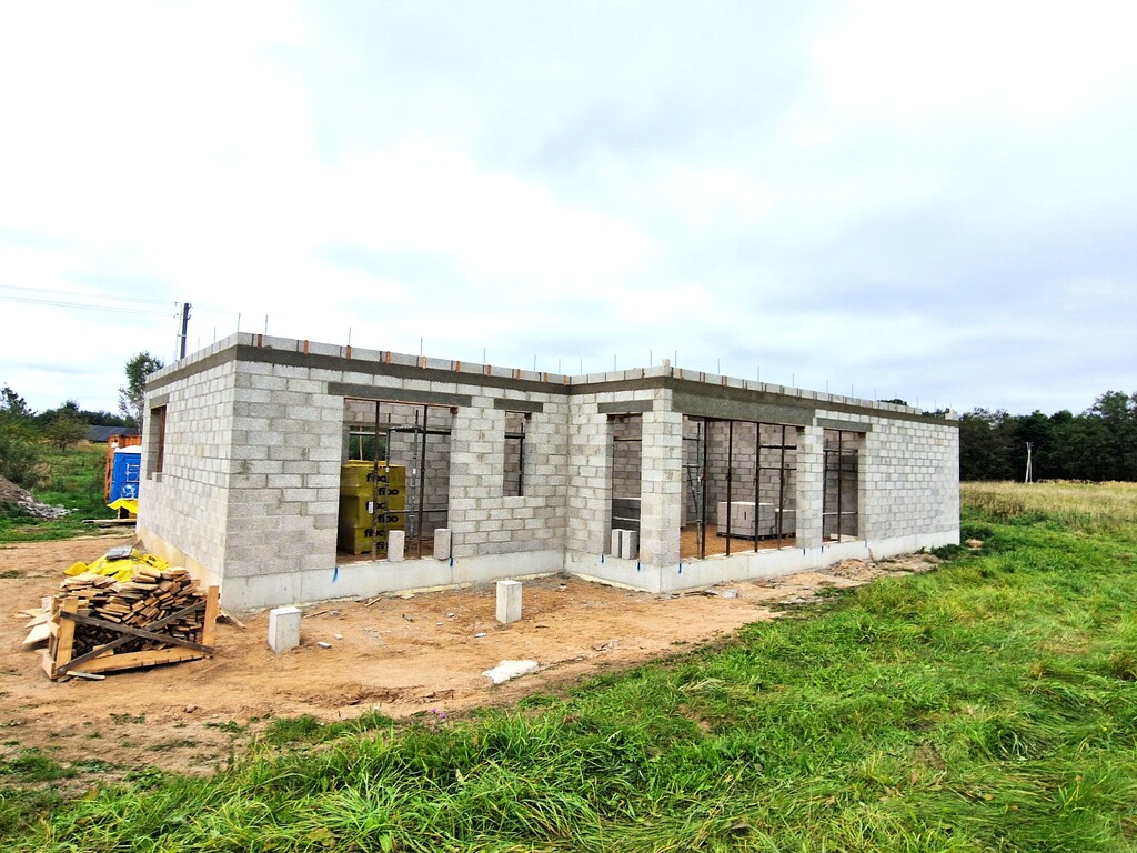 * lauko ir nešančios sienos sumūrytos iš itin kokybiškų Fibo Proof blokelių. Lauko sienos apšiltintos 30 cm Šillfoam formuoto putų polistirolo plokštėmis, apdaila – struktūrinis tinkas ir dekoras. Vidaus sienos tinkuotos, lubos – sumontuotas gipso kartonas, išvedžioti elektros kabeliai, rekuperacijos vamzdžiai ir kiti vidaus inžinieriniai tinklai
